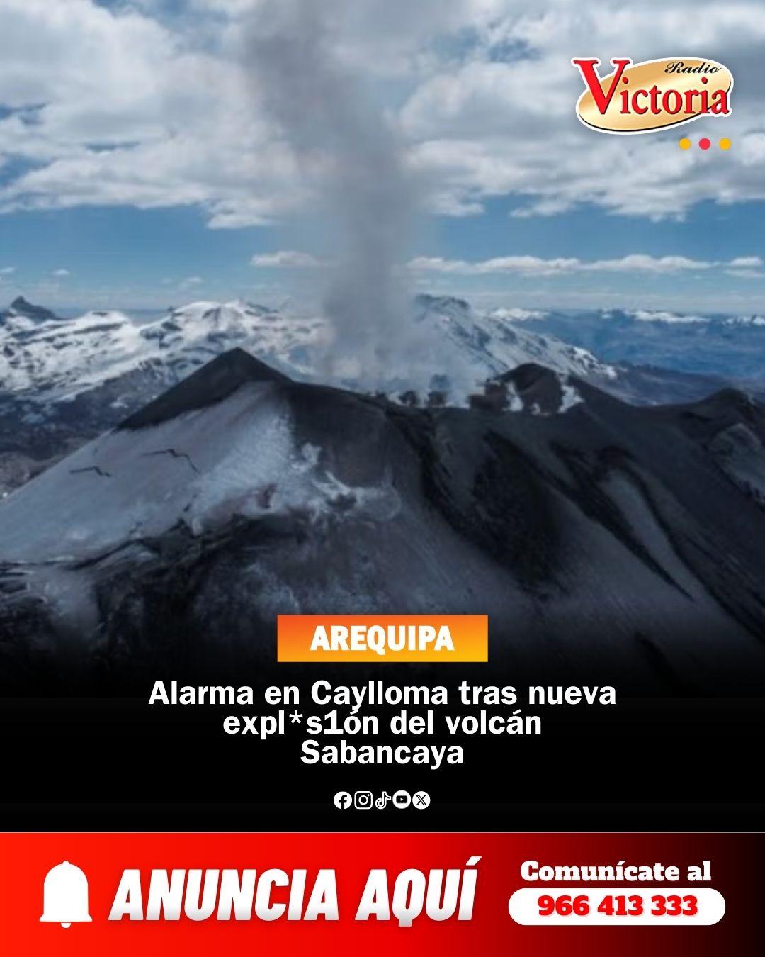 Se registró una nueva expl*s1ón en el volcán Sabancaya causando dispersión de cenizas hacia las zonas norte y noreste de la provincia de Caylloma. En la jornada se emitieron dos alertas vulcanológicas de nivel naranja, las dos con un radio de dispersión de cenizas superior a los 10 kilómetros. En una primera instancia se vieron afectadas las zonas de Huambo, Cabanaconde y Tapay y en una segunda se extendió hacia Cabanaconde, Tapay, Maca, Lari y Madrigal.