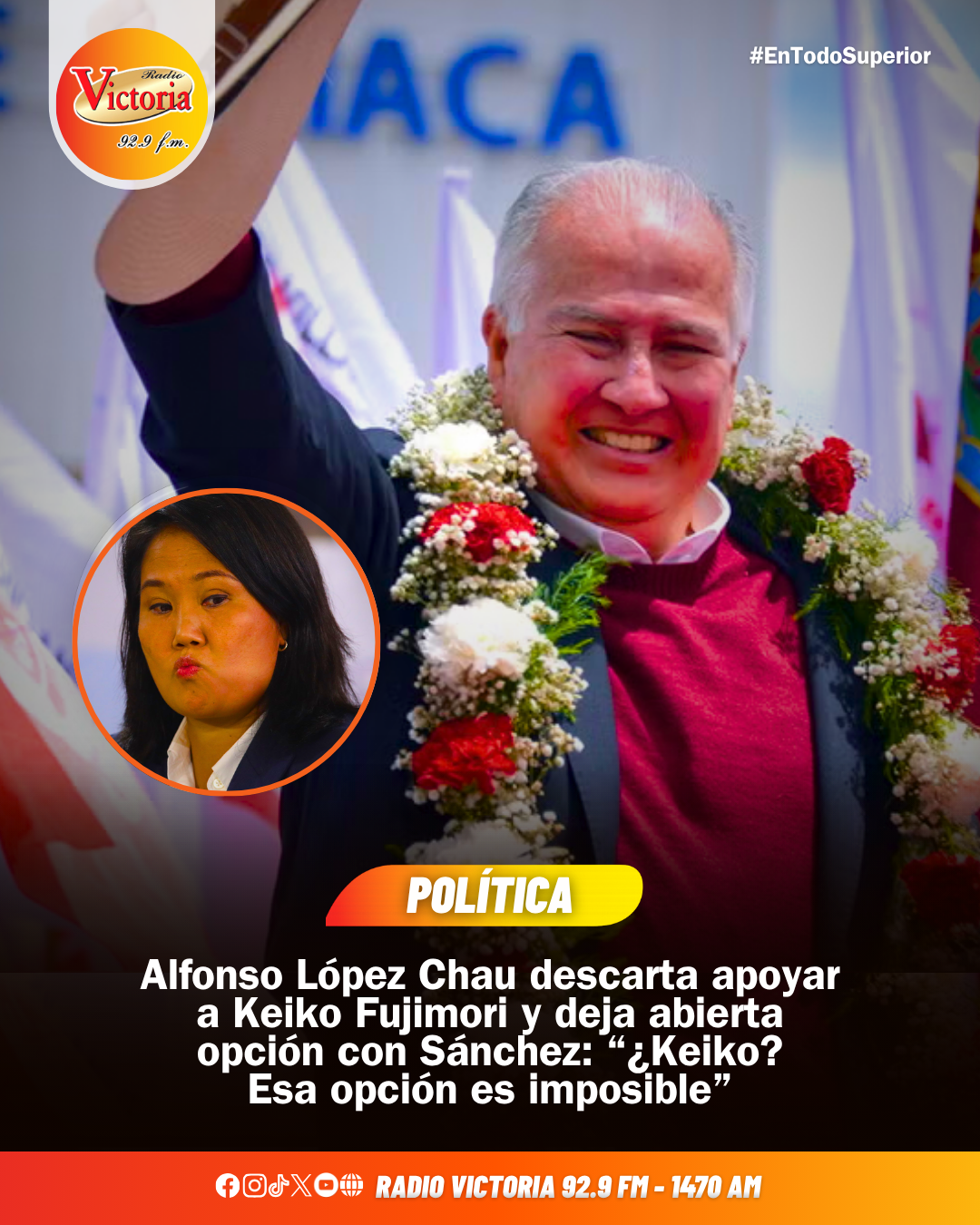 El candidato de Ahora Nación, Alfonso López Chau, descarta de manera tajante respaldar a Keiko Fujimori en una eventual segunda vuelta, afirmando que una alianza con el fujimorismo “es imposible” por su postura histórica frente a ese sector político.