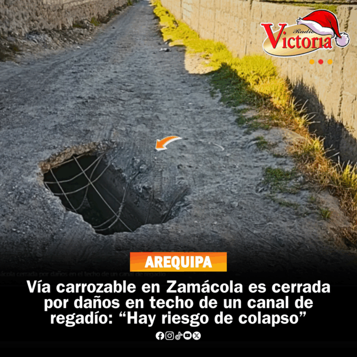 La vía carrozable de Zamácola es #cerrada al #tránsito#vehicular tras detectarse daños en el techo de un canal de regadío, lo que provocó la #formación de un forado en la calzada.
