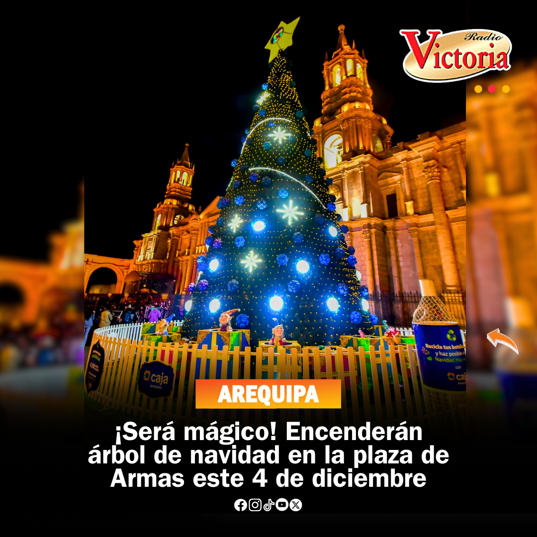 El tradicional encendido del árbol navideño en la Plaza de Armas de Arequipa se realizará este jueves 4 de diciembre de 2025, desde las 17:30 horas, dando apertura oficial a las celebraciones de fin de año.