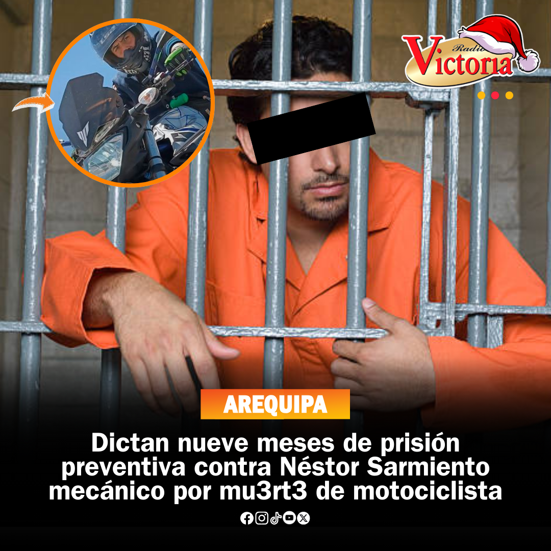 La Primera Fiscalía Provincial Penal Corporativa de Arequipa obtuvo 9 meses de prisión preventiva contra el mecánico Néstor Sarmiento, investigado como presunto coautor del delito de homicidio calificado en agravio del motociclista Daril Gonzales.