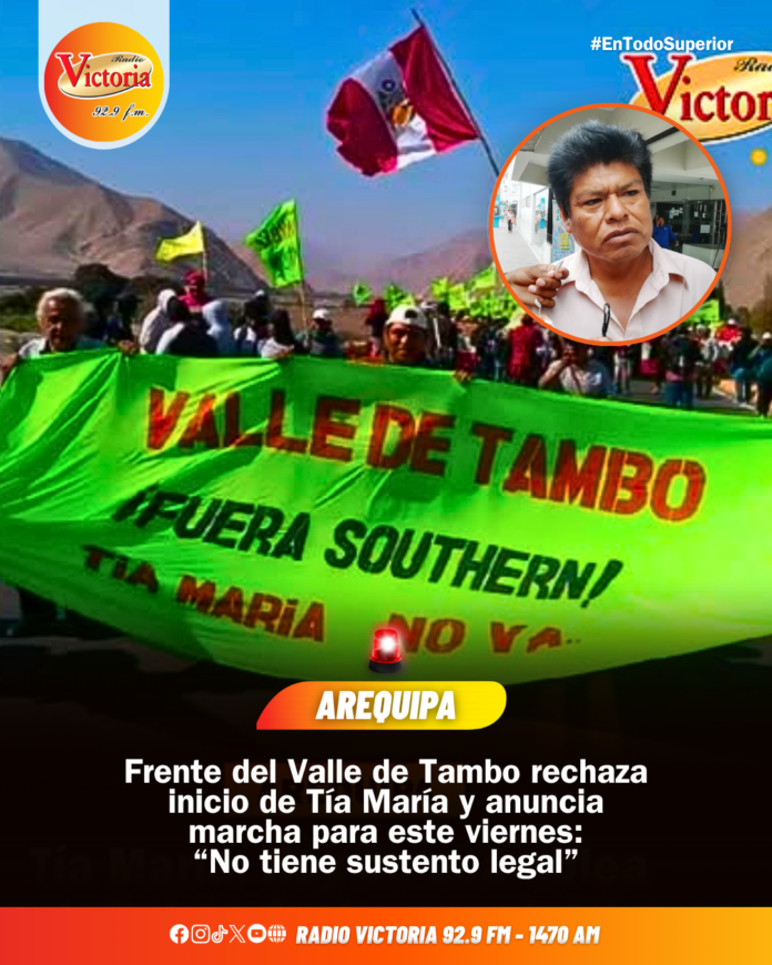 El vocero del Frente de Defensa del #ValleDeltTambo, #MiguelMeza, cuestiona la autorización del #gobierno para iniciar la #explotación de la primera etapa del proyecto #TíaMaría.