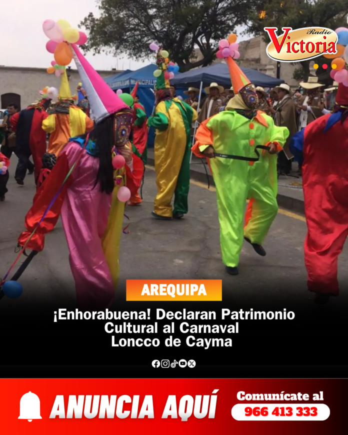 Oficialmente el Carnaval Loncco de Cayma ha sido declarado Patrimonio Cultural de la Nación por el Viceministerio de Patrimonio Cultural de Patrimonio Cultural e Industrias Culturales del Ministerio de Cultura.