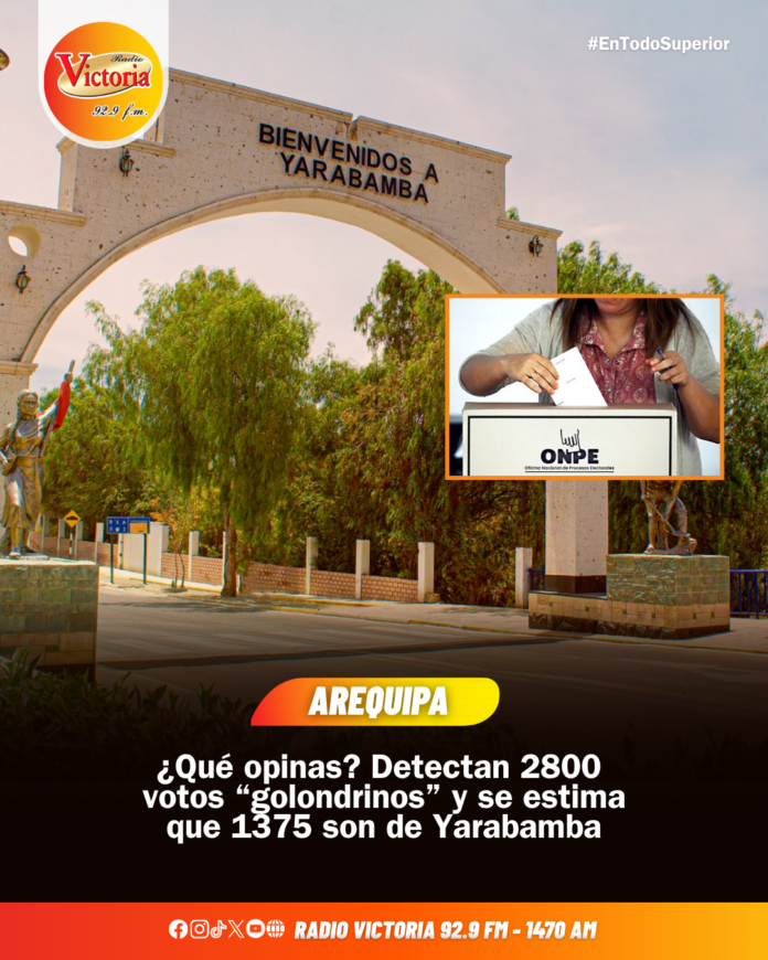Manuel Chuquillanqui, vocero de la Reniec dio a conocer que se detecto 2800 votos «golondrinos» de los cuales 1375 pertenecen a la jurisdicción de Yarabamba. Asimismo detalló que estos votos son de personas que cambian su domicilio electoral a un distrito donde realmente no viven, con la finalidad de sufragar allí e influir en los resultados de las elecciones.