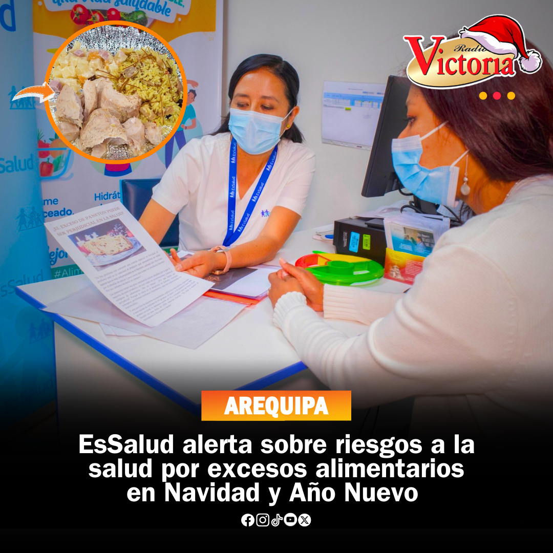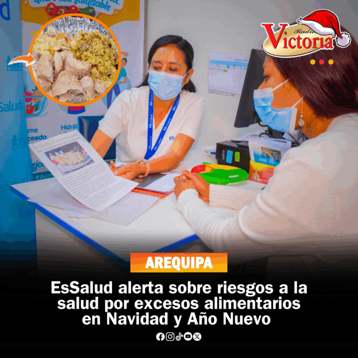 EsSalud Arequipa advirtió que el consumo excesivo de alimentos ricos en azúcar, grasas y harinas durante Navidad y Año Nuevo puede generar problemas digestivos, aumento de peso y descompensaciones metabólicas, por lo que exhortó a mantener una alimentación equilibrada en estas fechas.