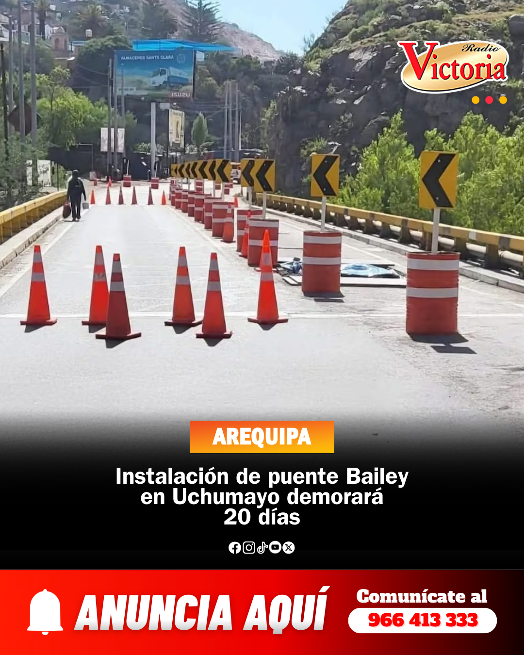 Los conductores deberán esperar entre 15 y 20 días para que el puente modular que reemplazará la infraestructura en Uchumayo se instale. La información se dio a conocer en la reunión multisectorial de urgencia que realizó ayer en la noche Gerencia Regional de Transportes y Comunicaciones.