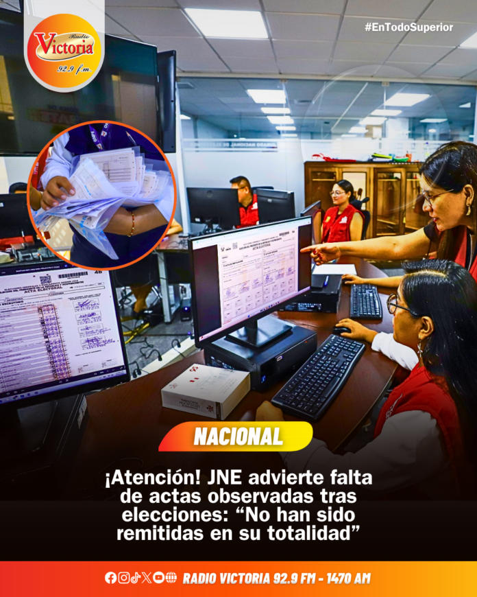 JNE advierte falta de actas observadas tras elecciones: «No han sido remitidas en su totalidad»