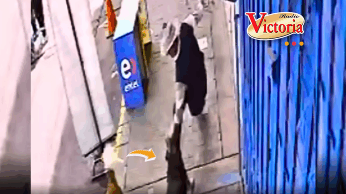 El incidente quedó registrado en un video al que tuvo acceso Radio Victoria, donde se observa cómo el animal lo derriba al suelo tras el feroz at4_que.