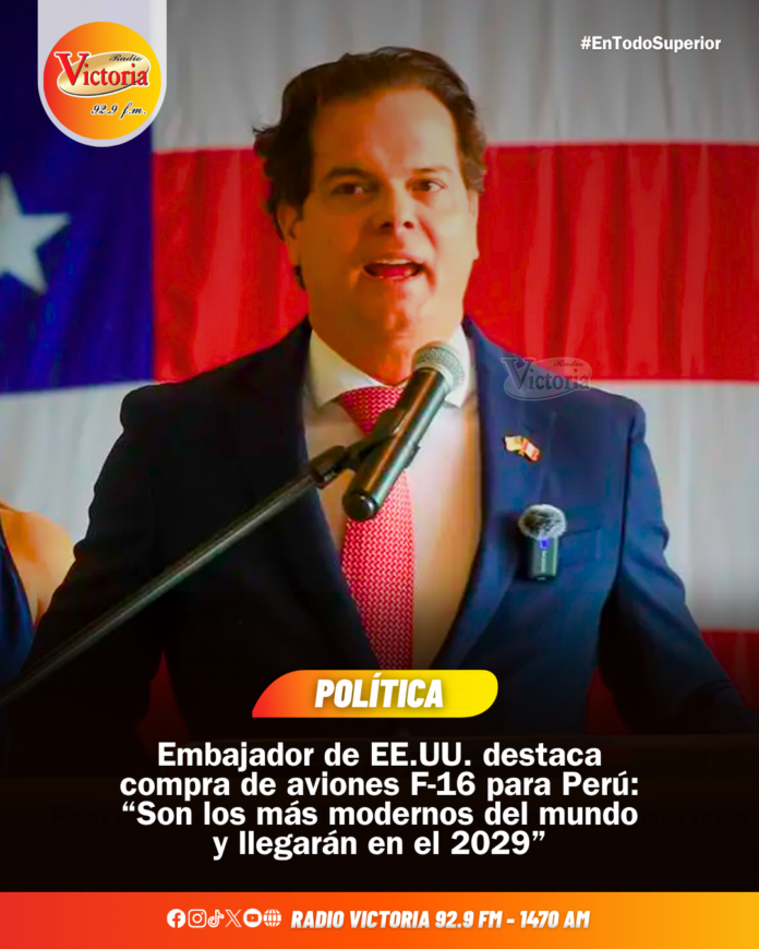 El embajador de Estados Unidos, Bernie Navarro, resalta la adquisición de #aviones F-16 Fighting Falcon por parte del Gobierno peruano, asegurando que se trata de las aeronaves más #modernas a nivel mundial.
